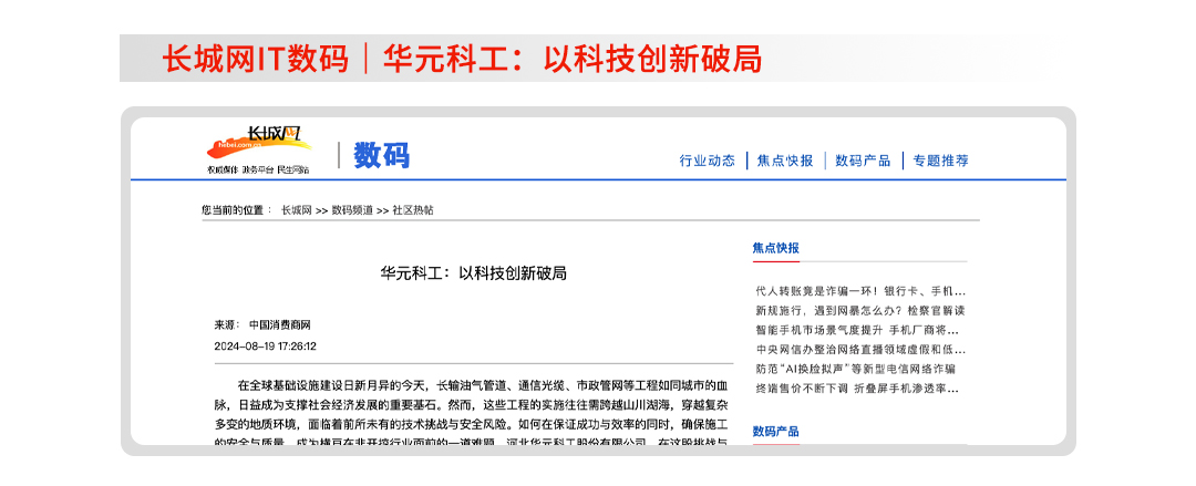 在全球基礎(chǔ)設(shè)施建設(shè)日新月異的今天,長(zhǎng)輸油氣管道、通信光纜、市政管網(wǎng)等工程如同城市的血脈,日益成為支撐社會(huì)經(jīng)濟(jì)發(fā)展的重要基石。然而,這些工程的實(shí)施往往需跨越山川湖海,穿越復(fù)雜多變的地質(zhì)環(huán)境,面臨著前所未有的技術(shù)挑戰(zhàn)與安全風(fēng)險(xiǎn)。如何在保證成功與效率的同時(shí),確保施工的安全與質(zhì)量,成為橫亙?cè)诜情_挖行業(yè)面前的一道難題。河北華元科工股份有限公司,在這股挑戰(zhàn)與機(jī)遇并存的浪潮中,以其前瞻性的戰(zhàn)略眼光和強(qiáng)大的自主研發(fā)實(shí)力,為行業(yè)難題提供了創(chuàng)新性的解決方案,引領(lǐng)非開挖技術(shù)邁向新高度。